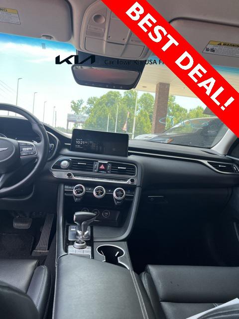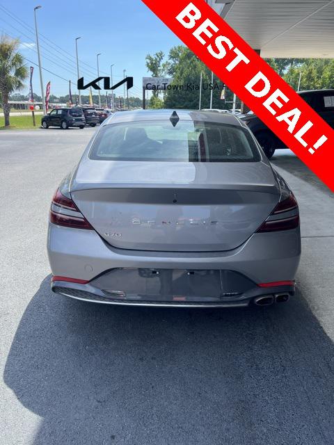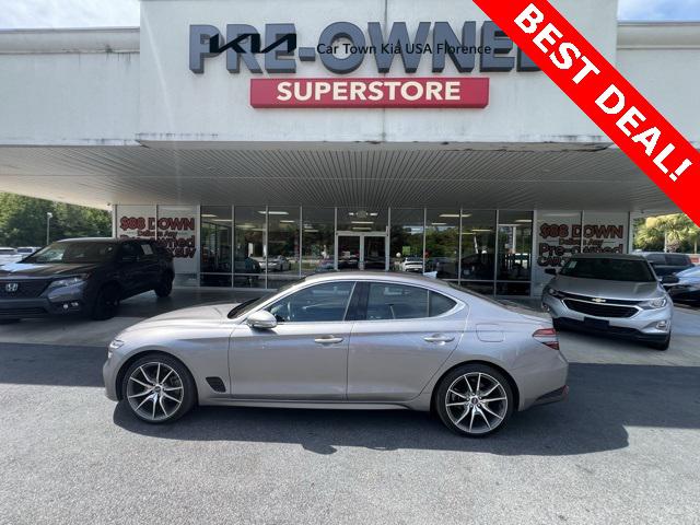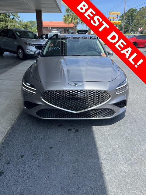 Priced below KBB Fair Purchase Price! Odometer is 8948 miles below market average!Savile Silver 2023 Genesis G70 2.0T 4D Sedan RWD I4 8-Speed Automatic with SHIFTRONICNavigation System Option Group 01 Wheels: 19"" x 8.0J Fr & 19"" x 8.5J Rr Alloy 4-Wheel Disc Brakes 6 Speakers ABS brakes Air Conditioning Alloy wheels AM/FM radio: SiriusXM Android Auto & Apple CarPlay Anti-whiplash front head restraints Auto High-beam Headlights Auto-dimming Rear-View mirror Automatic temperature control Brake assist Bumpers: body-color Delay-off headlights Driver door bin Driver vanity mirror Dual front impact airbags Dual front side impact airbags Electronic Stability Control Emergency communication system: Genesis Connected Services Exterior Parking Camera Rear Four wheel independent suspension Front anti-roll bar Front Bucket Seats Front Center Armrest Front dual zone A/C Front reading lights Fully automatic headlights Garage door transmitter: HomeLink Heated door mirrors Heated front seats Heated Multi-Adjustable Front Bucket Seats Illuminated entry Knee airbag Leatherette Seating Surfaces Low tire pressure warning Occupant sensing airbag Outside temperature display Overhead airbag Overhead console Panic alarm Passenger door bin Passenger vanity mirror Power door mirrors Power driver seat Power passenger seat Power steering Power windows Radio: AM/FM/SiriusXM/HD Audio System Rear anti-roll bar Rear reading lights Rear seat center armrest Rear window defroster Remote keyless entry Security system Speed control Speed-Sensitive Wipers Split folding rear seat Steering wheel mounted audio controls Tachometer Telescoping steering wheel Traction control Trip computer Turn signal indicator mirrors Variably intermittent wipers Navigation System Option Group 01 Wheels: 19"" x 8.0J Fr & 19"" x 8.5J Rr Alloy.Be sure to contact Internet Sales for details. CALL 843-292-8585. Proudly serving: Florence Sumter Darlington Marion Charleston Columbia Conway Camden Aynor Lake City Lakewood Conway Myrtle Beach Hartsville and all of greater South Carolina!