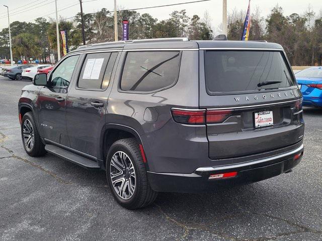 Recent Arrival! Odometer is 1464 miles below market average!CARFAX One-Owner. Clean CARFAX.Baltic Gray Metallic Clearcoat 2024 Jeep Wagoneer Series II 4D Sport Utility RWD 3.0L I6 8-Speed Automatic** CLEAN VEHICLE HISTORY...NO ACCIDENTS ** 40/20/40 2nd Row Bench Power Tip/Slide 60/40 Power Recline 3rd Row Seat 8-Passenger Seating Flexible Seating Group Full Length Floor Console Navigation System Power Liftgate Quick Order Package 25J Wheels: 20"" x 9.0"" Premium 2 Aluminum 10 Speakers 3.55 Rear Axle Ratio 3rd row seats: bench 4-Wheel Disc Brakes ABS brakes Adjustable pedals Air Conditioning Alloy wheels AM/FM radio: SiriusXM with 360L Anti-whiplash front head restraints Apple CarPlay/Android Auto Audio memory Auto-dimming door mirrors Auto-dimming Rear-View mirror Auto-leveling suspension Automatic temperature control Brake assist Bumpers: body-color Compass Delay-off headlights Driver door bin Driver vanity mirror Driver's Seat Mounted Armrest Dual front impact airbags Dual front side impact airbags Electronic Stability Control Emergency communication system: Wagoneer Connect Exterior Parking Camera Rear Four wheel independent suspension Front anti-roll bar Front Bucket Seats Front Center Armrest w/Storage Front dual zone A/C Front fog lights Front reading lights Fully automatic headlights Garage door transmitter Genuine wood console insert Genuine wood dashboard insert Genuine wood door panel insert Heated door mirrors Heated front seats Heated rear seats Heated steering wheel Illuminated entry Knee airbag Leather Trimmed Bucket Seats Low tire pressure warning Memory seat Normal Duty Suspension Occupant sensing airbag Outside temperature display Overhead airbag Overhead console Panic alarm Passenger door bin Passenger seat mounted armrest Passenger vanity mirror Pedal memory Power adjustable front head restraints Power door mirrors Power driver seat Power passenger seat Power steering Power windows Radio data system Radio: Uconnect 5 Nav w/10.1"" Display Rain sensing wipers Rear air conditioning Rear anti-roll bar Rear dual zone A/C Rear reading lights Rear seat center armrest Rear window defroster Rear window wiper Reclining 3rd row seat Remote keyless entry Security system Speed control Speed-sensing steering Speed-Sensitive Wipers Split folding rear seat Steering wheel memory Steering wheel mounted audio controls Tachometer Telescoping steering wheel Tilt steering wheel Traction control Trip computer Turn signal indicator mirrors Variably intermittent wipers Ventilated front seats Voltmeter 40/20/40 2nd Row Bench Power Tip/Slide 60/40 Power Recline 3rd Row Seat 8-Passenger Seating Flexible Seating Group Full Length Floor Console Navigation System Power Liftgate Quick Order Package 25J Wheels: 20"" x 9.0"" Premium 2 Aluminum.Be sure to contact Internet Sales for details. CALL 843-292-8585. Proudly serving: Florence Sumter Darlington Marion Charleston Columbia Conway Camden Aynor Lake City Lakewood Conway Myrtle Beach Hartsville and all of greater South Carolina!